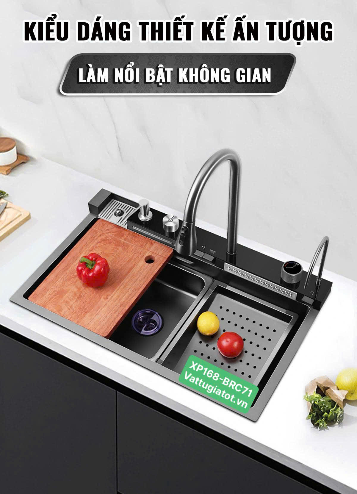✔ Thiết kế đa năng tích hợp nhiều phụ kiện, tiết kiệm không gian bếp
