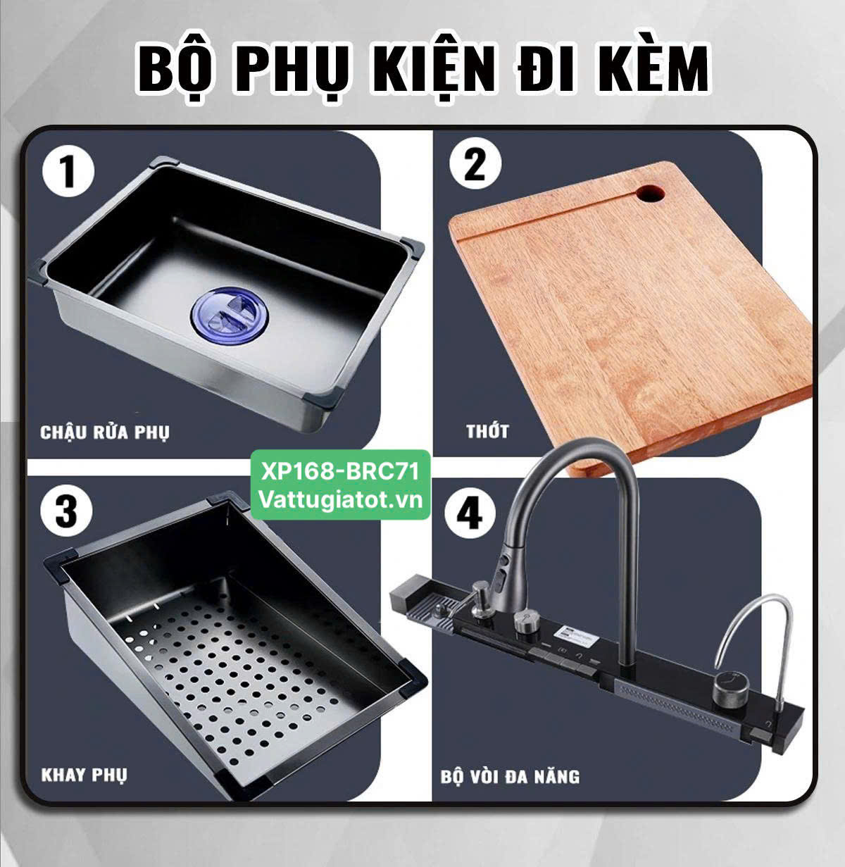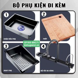 Bộ sản phẩm Chậu Rửa Chén Thông Minh 1 Hộc 5 Phím XP168-CRC71 bao gồm: