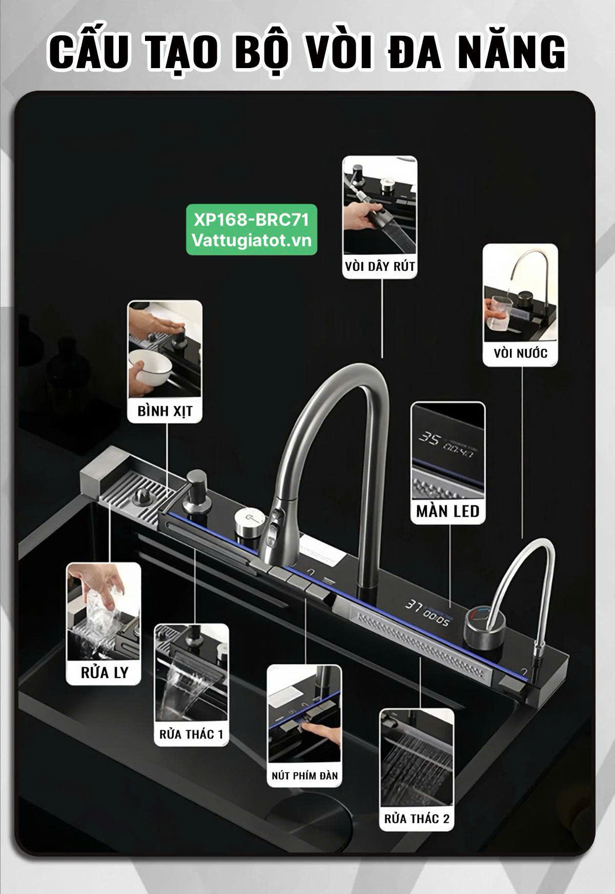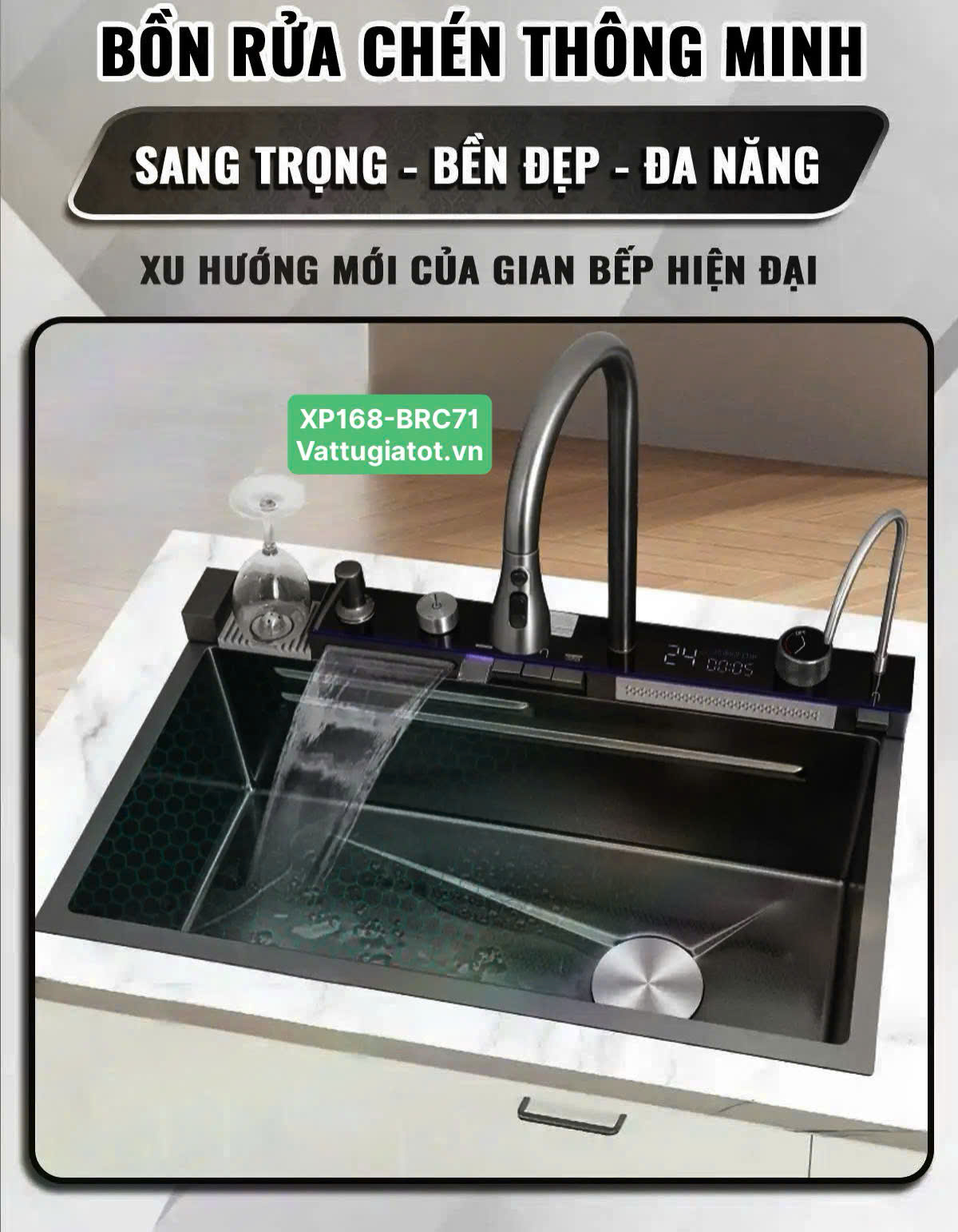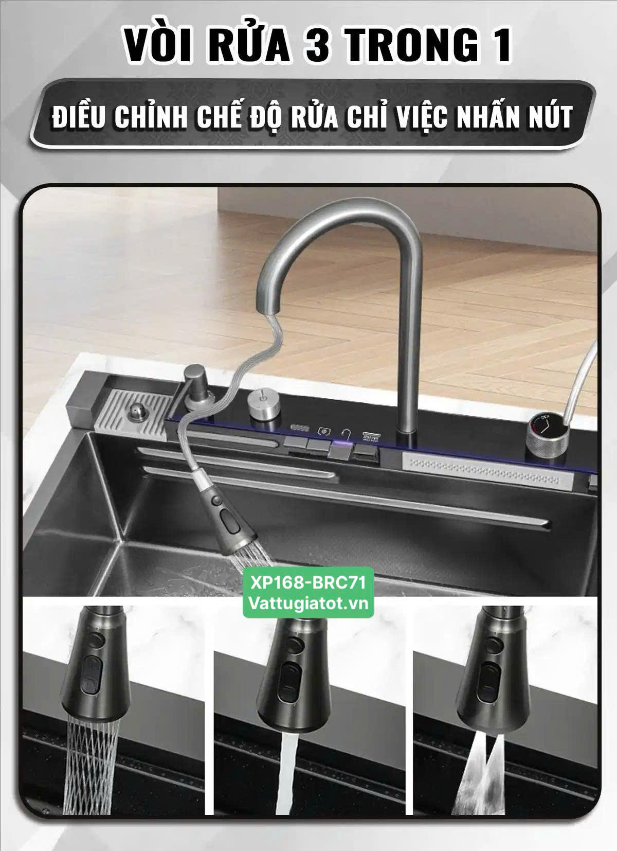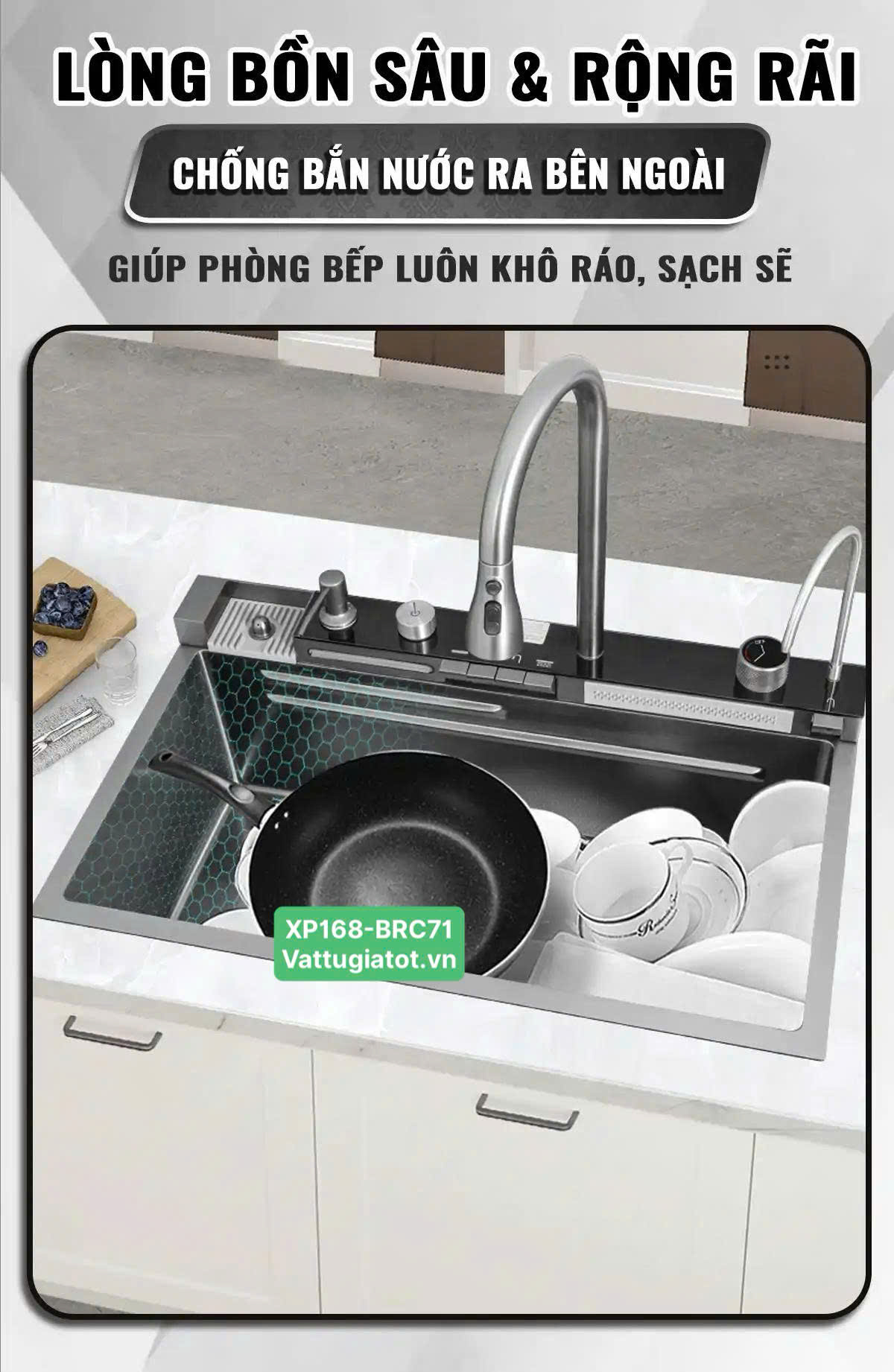 Tên sản phẩm: Chậu Rửa Chén Thông Minh 1 Hộc 5 Phím XP168-CRC71