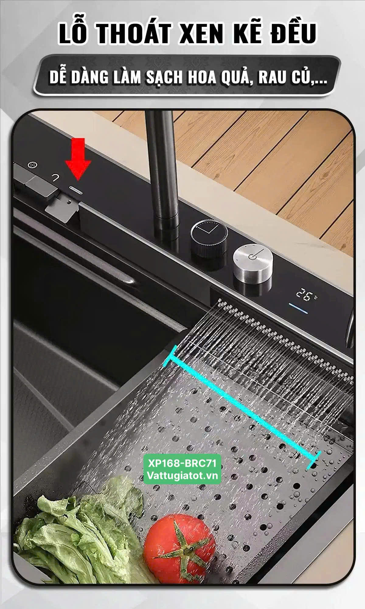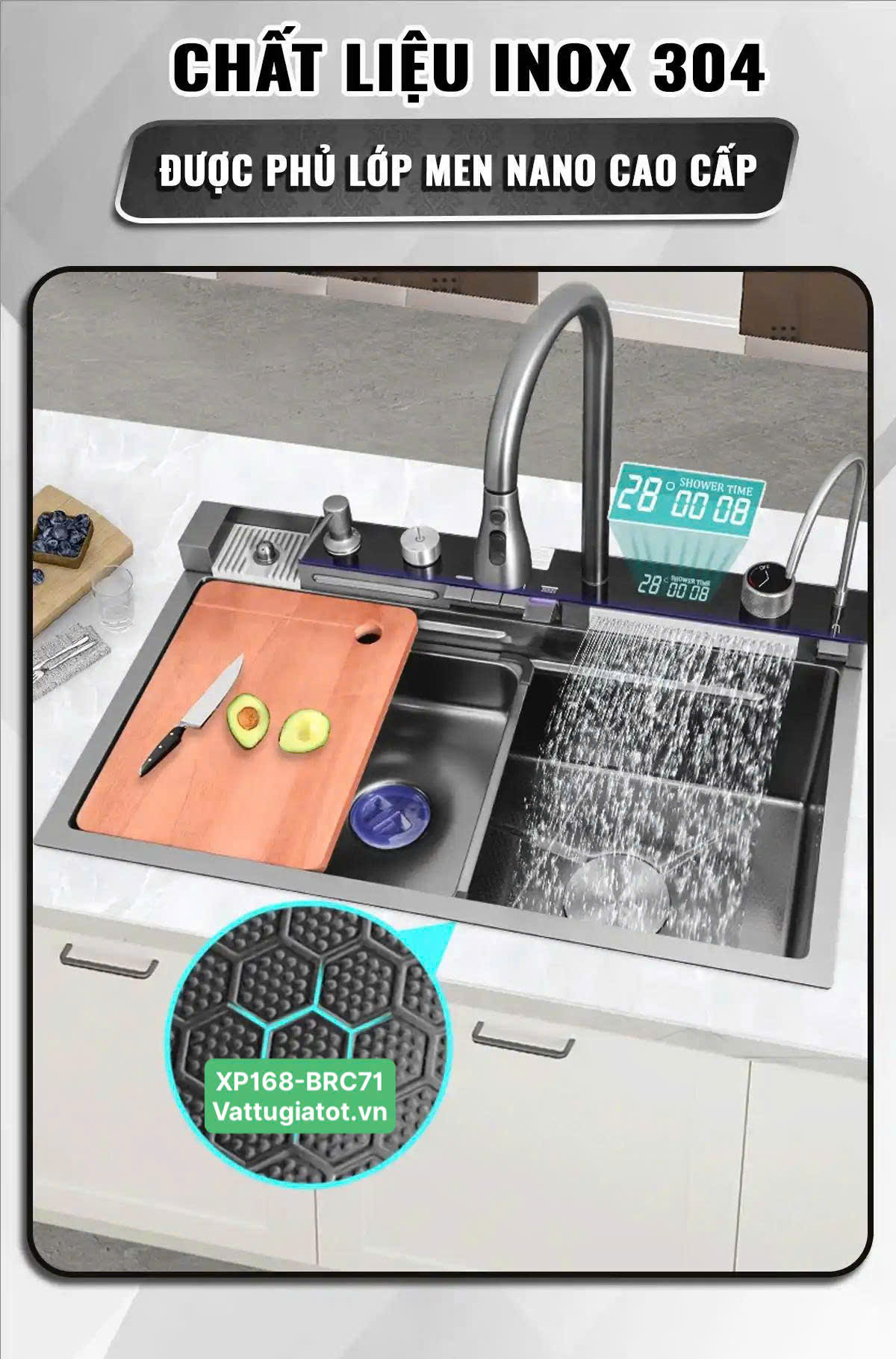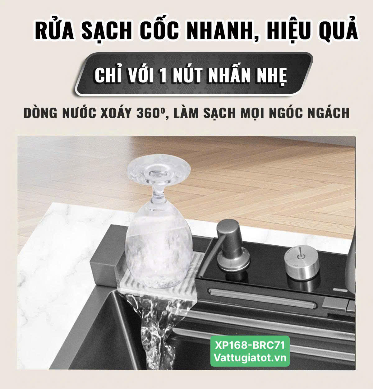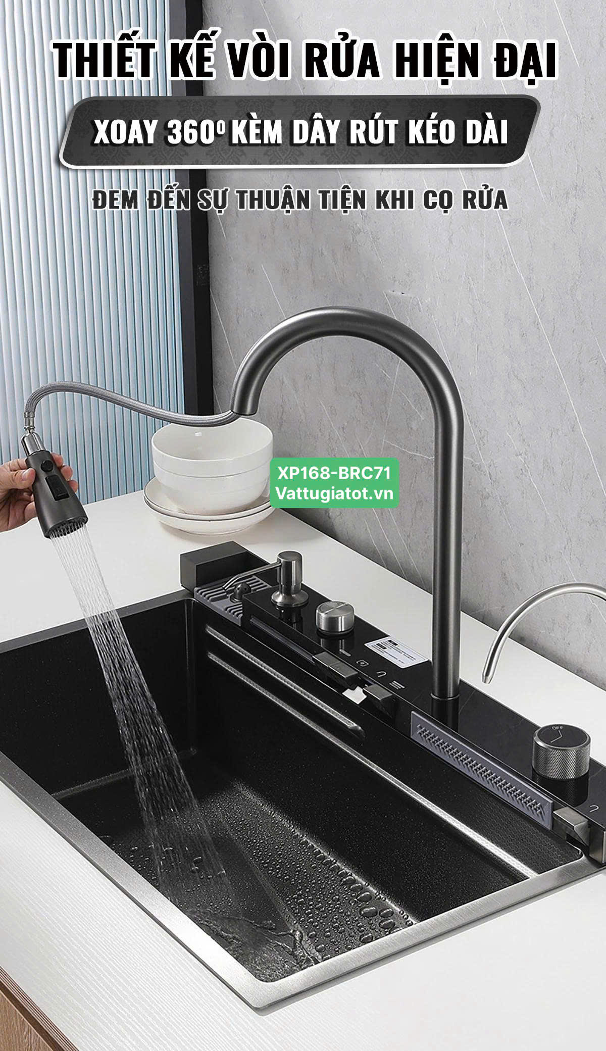 Tên sản phẩm: Chậu Rửa Chén Thông Minh 1 Hộc 5 Phím XP168-CRC71