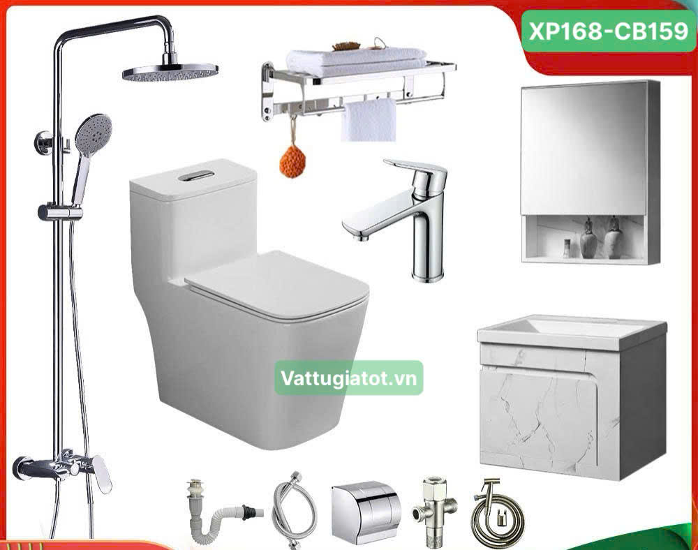 📦 Combo Trọn Bộ Nhà Tắm 10 Món Nóng Lạnh XP168-CB159 bao gồm: