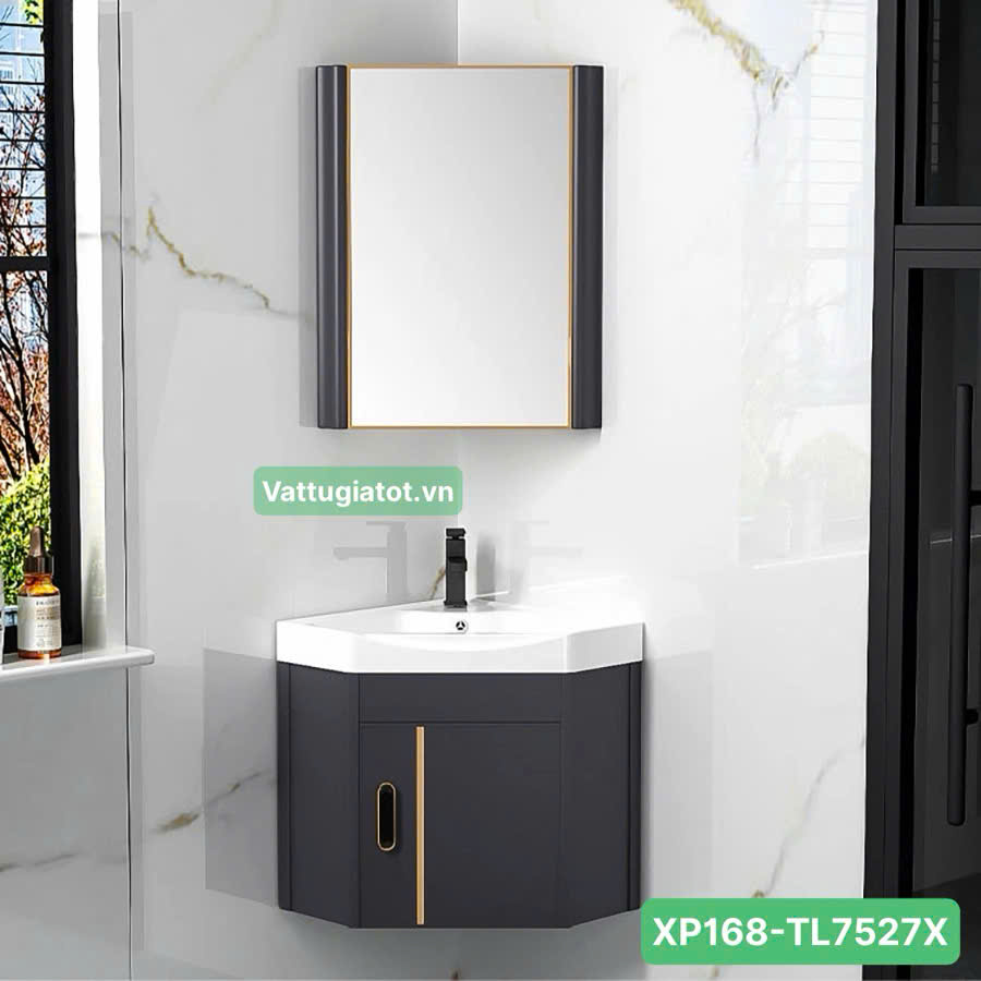 Sản phẩm: Tủ Góc Lavabo Nhôm Cao Cấp Xám Viền Vàng XP168-TL7527X